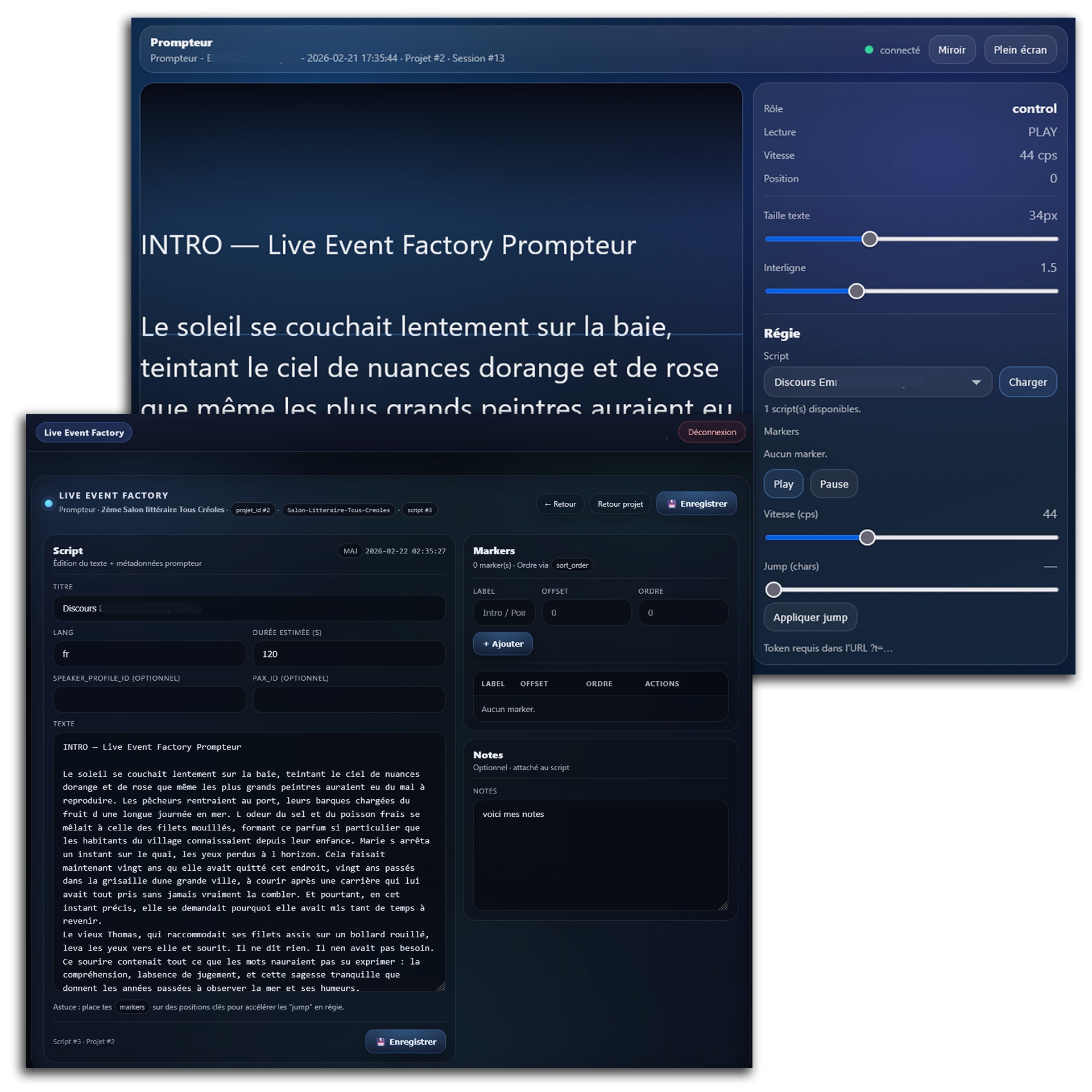 C’est précisément l’objectif du module Prompteur intégré à Live Event Factory.