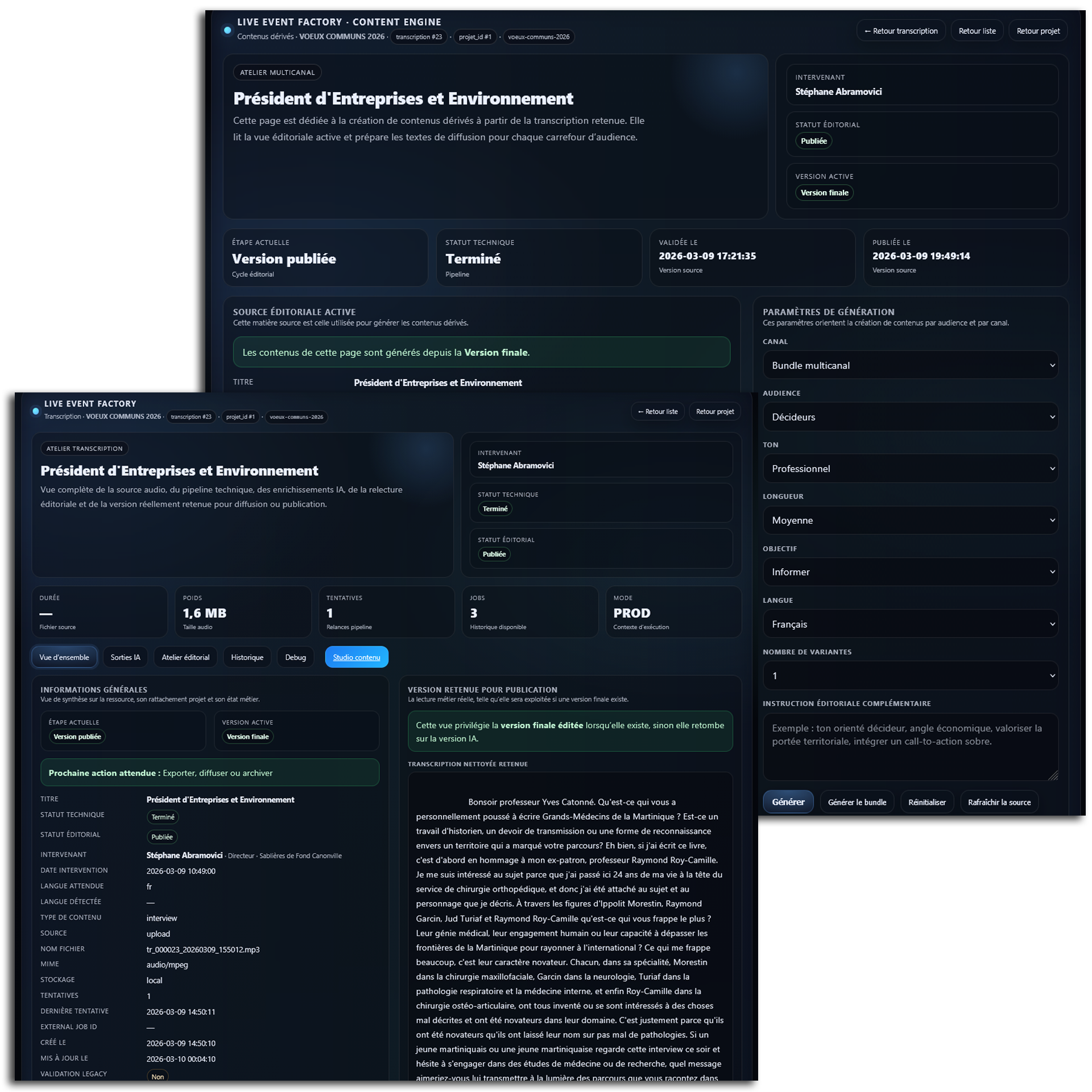 Avec les modules Transcription et Content Studio de Live Event Factory, vos événements ne se terminent plus lorsque les micros s'éteignent.
